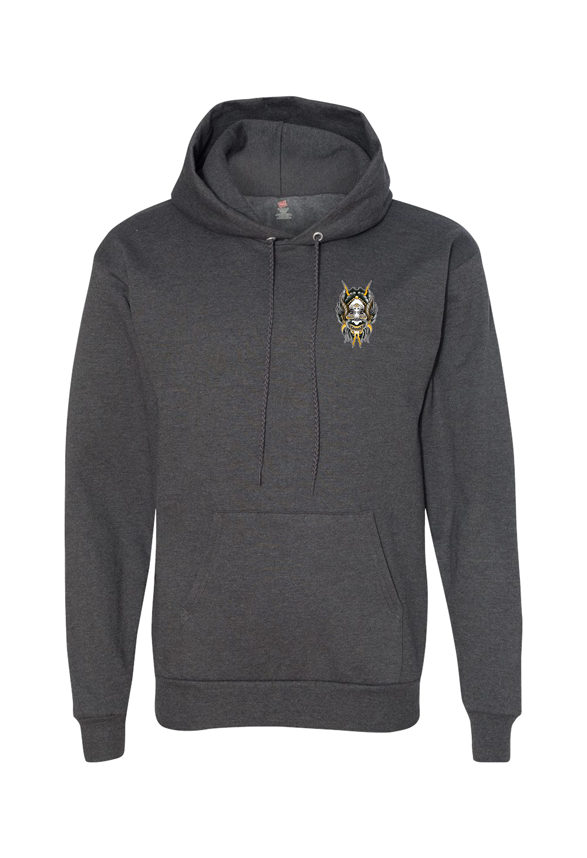 Pullover grey hoodies with "Devils" design printed on Hanes sweatshirts. Shipping now.